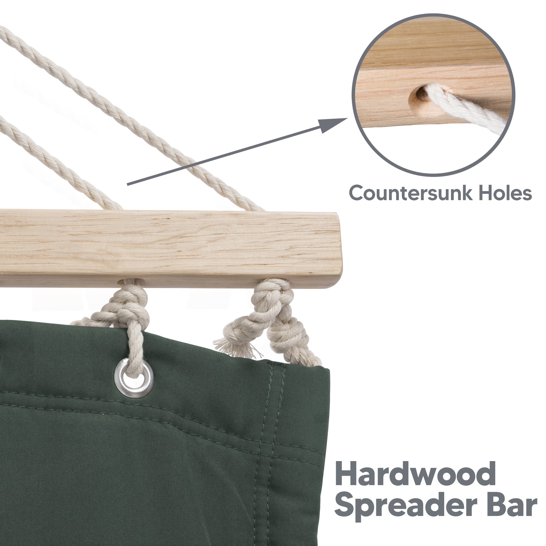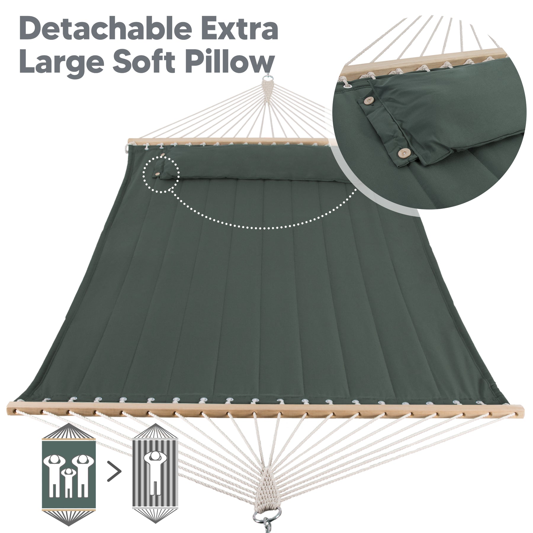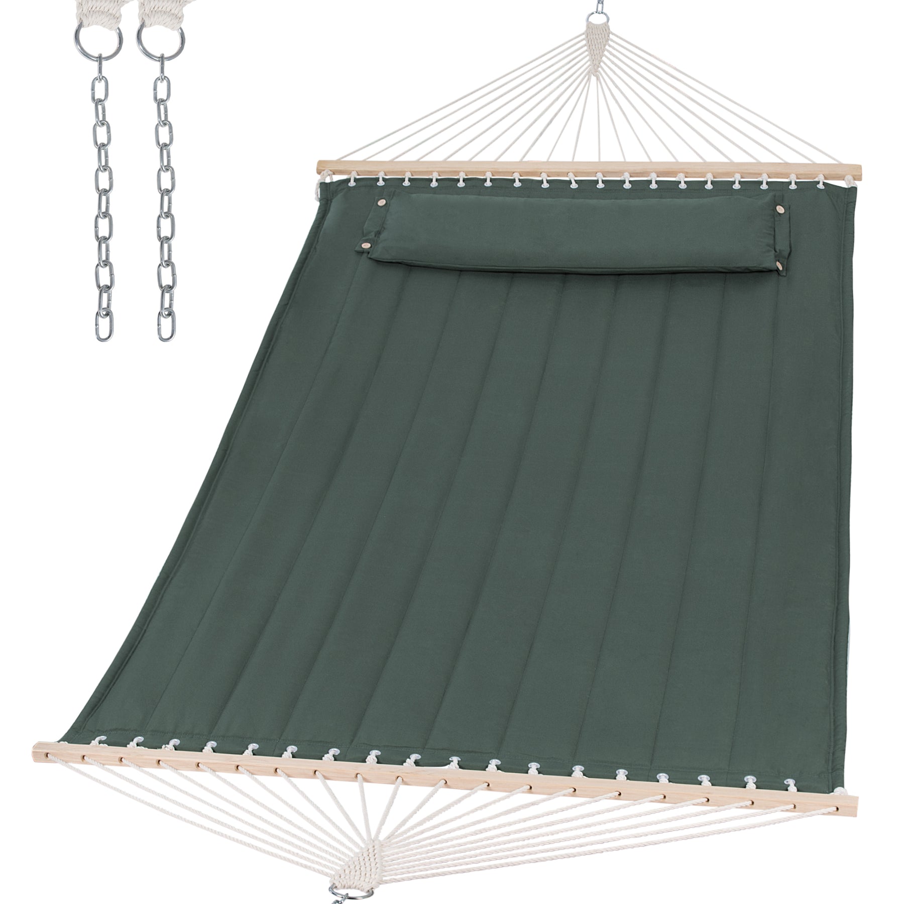 • Stable Hardwood Spreader Bar: The quilted hammock has a 55-inch hardwood bar that prevents flipping. Countersunk holes reduce rope friction for enhanced durability.