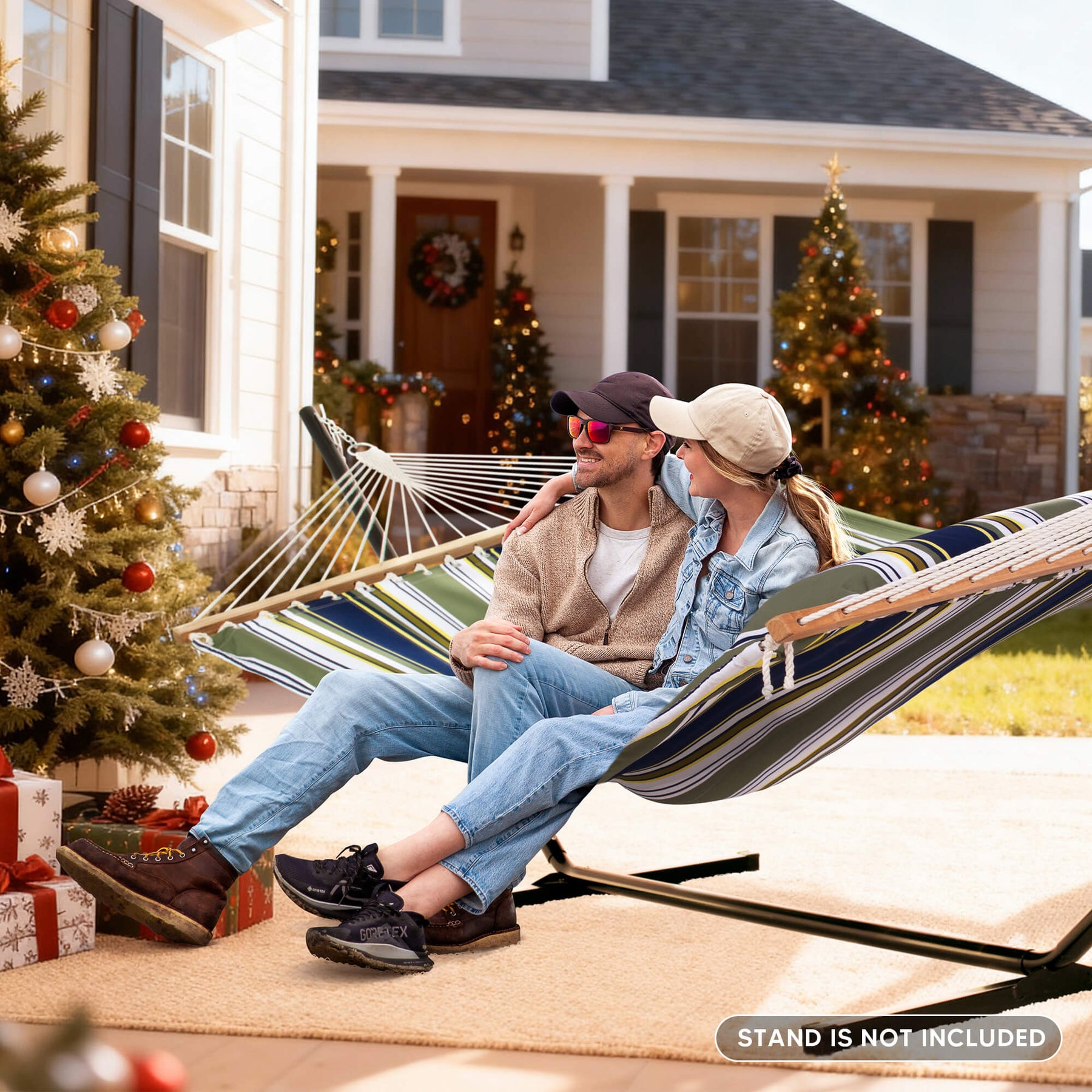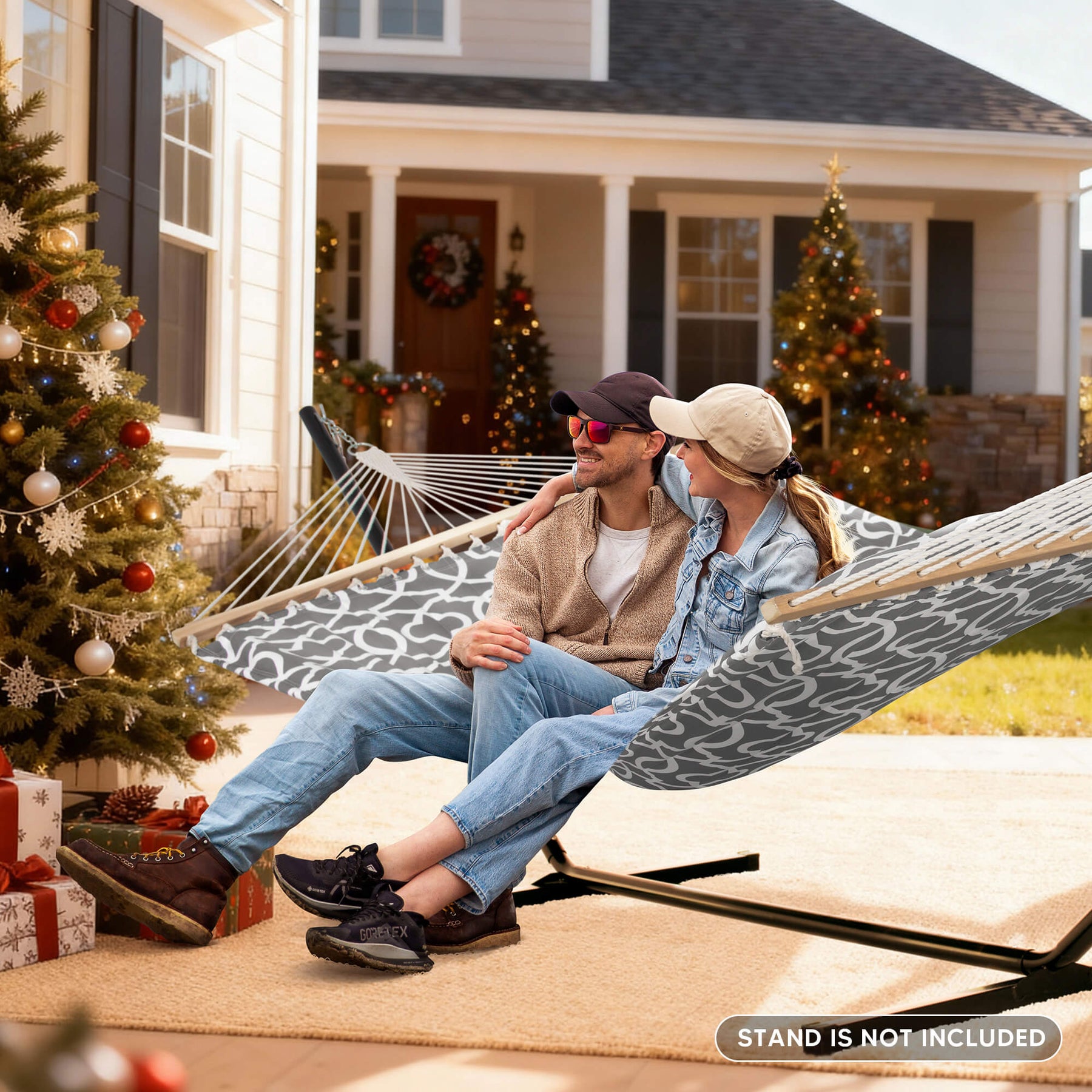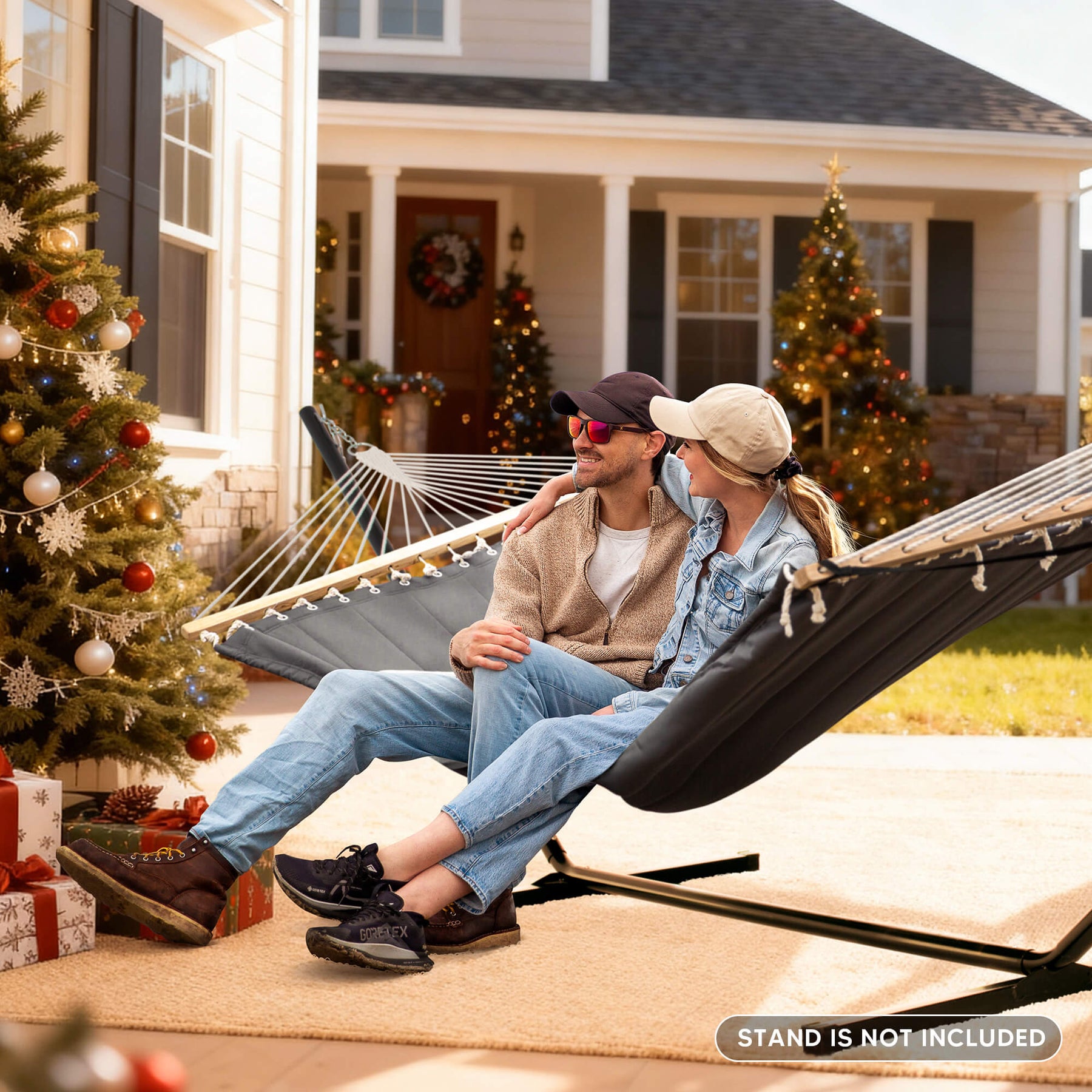 • Spacious 2-Person Design: Large 78.7"L x 55.1"W double hammock bed (122" ring-to-ring). Supports up to 475 lbs for comfortable sharing.