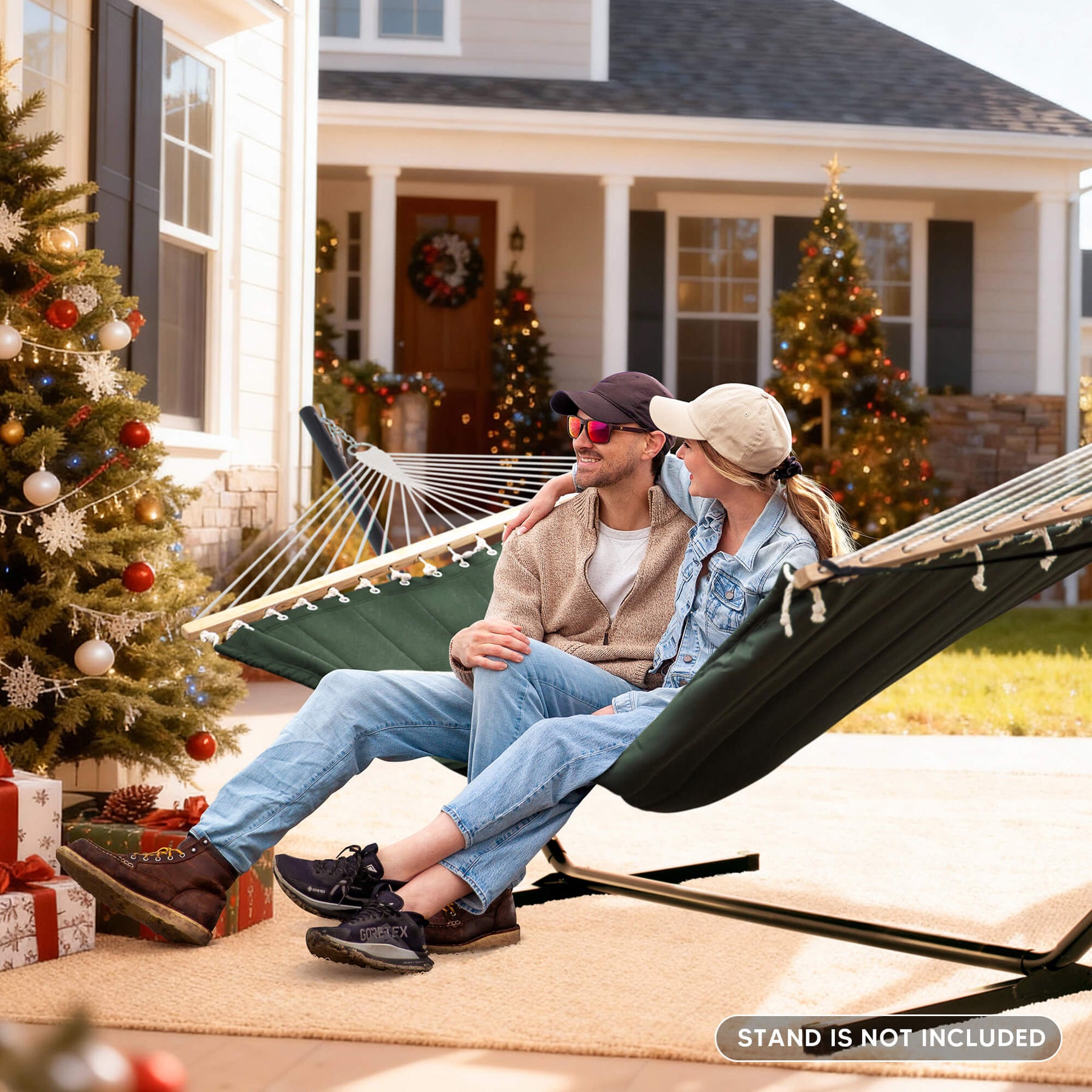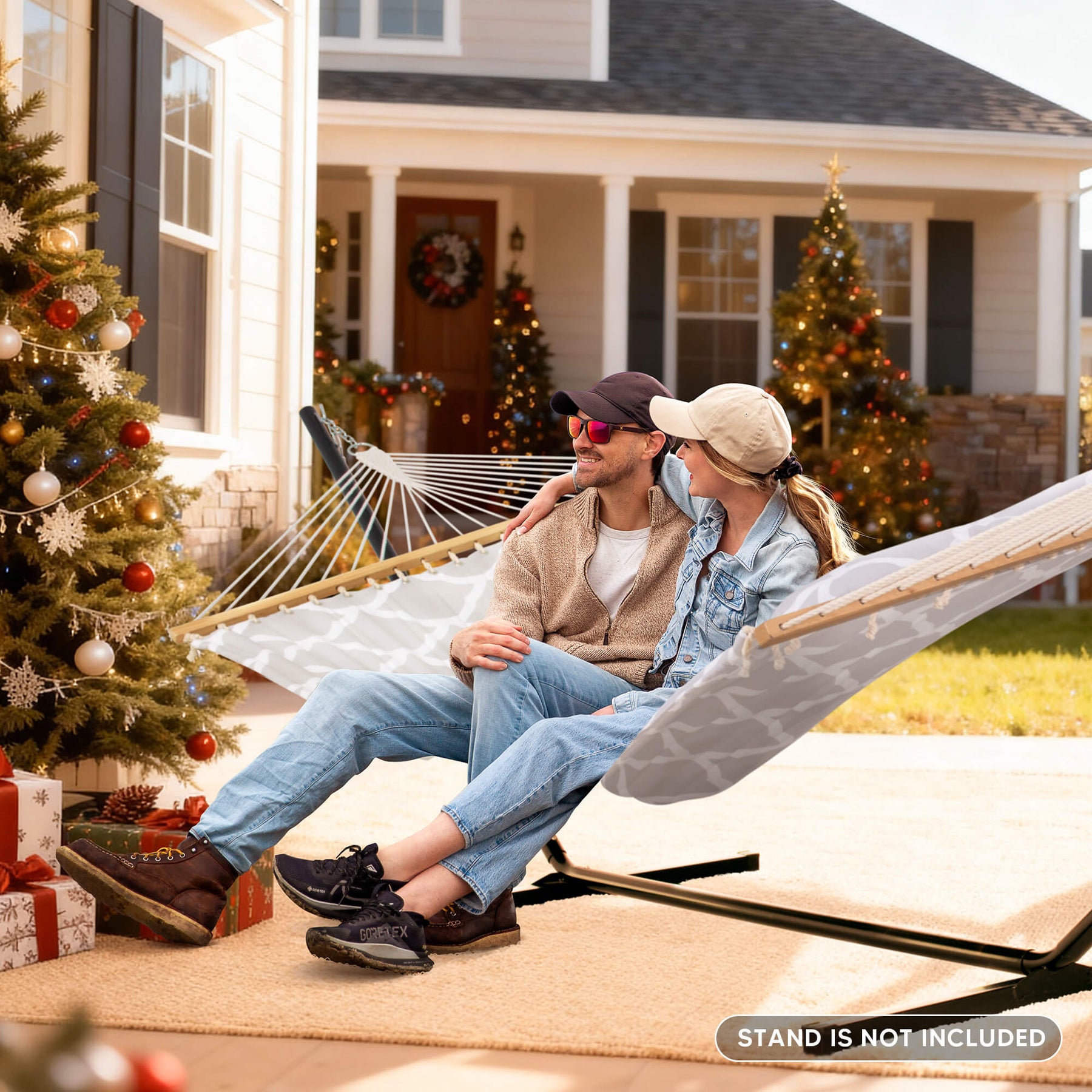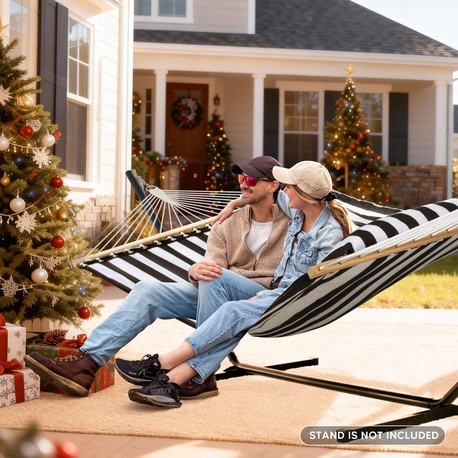 • Spacious 2-Person Design: Large 78.7"L x 55.1"W double hammock bed (122" ring-to-ring). Supports up to 475 lbs for comfortable sharing.