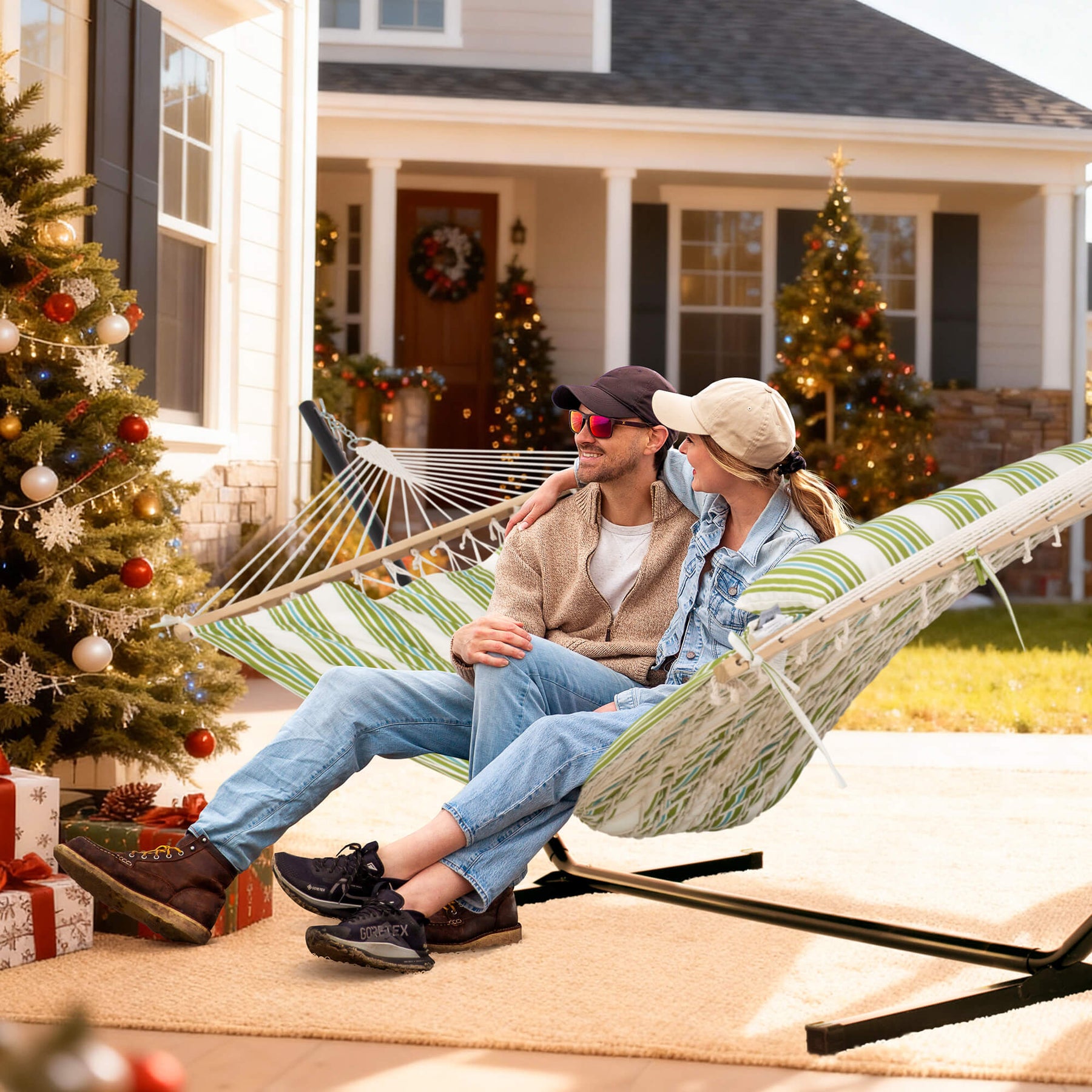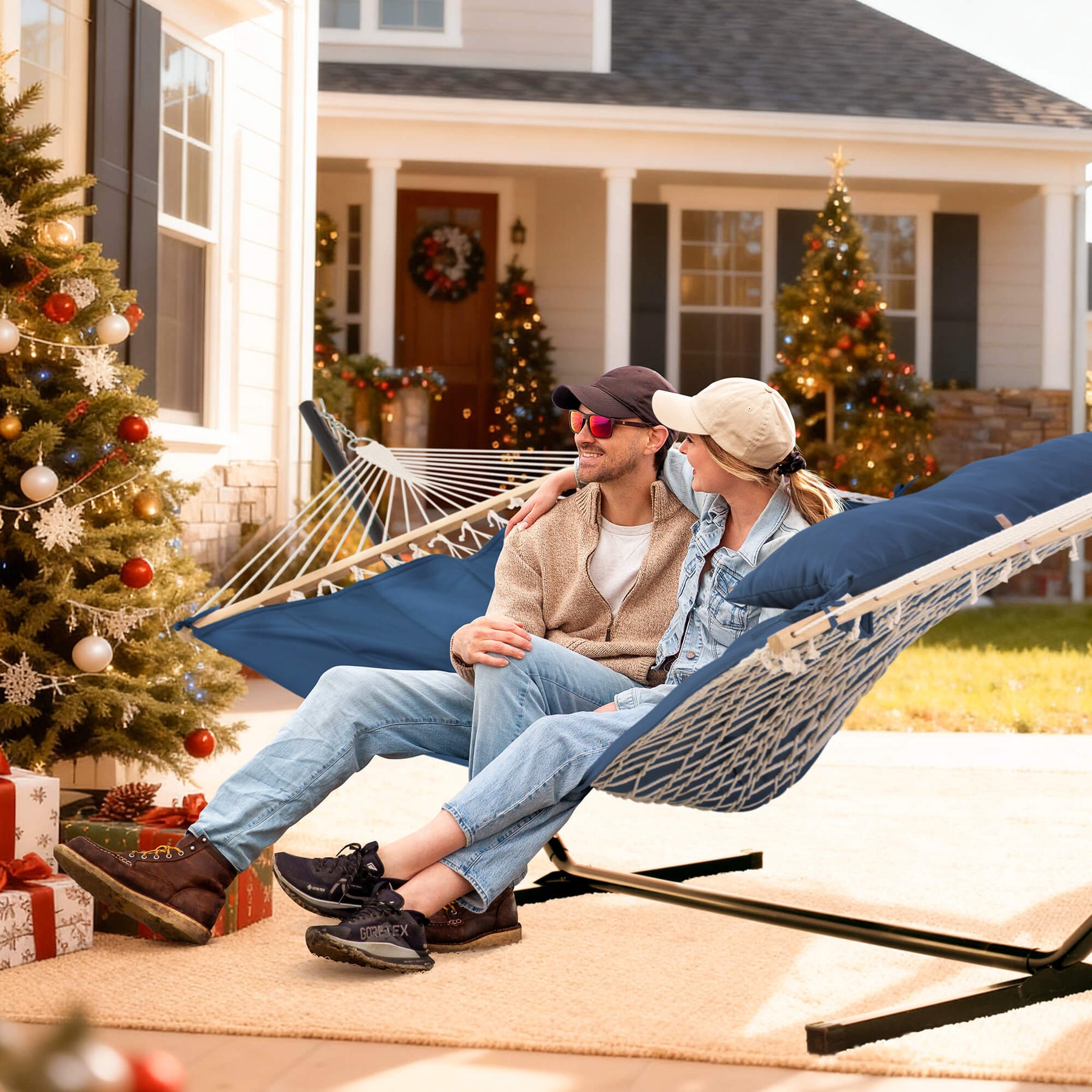 • Large and Heavy-Duty Hammocks: Spacious 76" L x 52" W bed accommodates two (includes 40" x 8.5" pillow). Holds up to 475 lbs, perfect for sharing with friends or family.