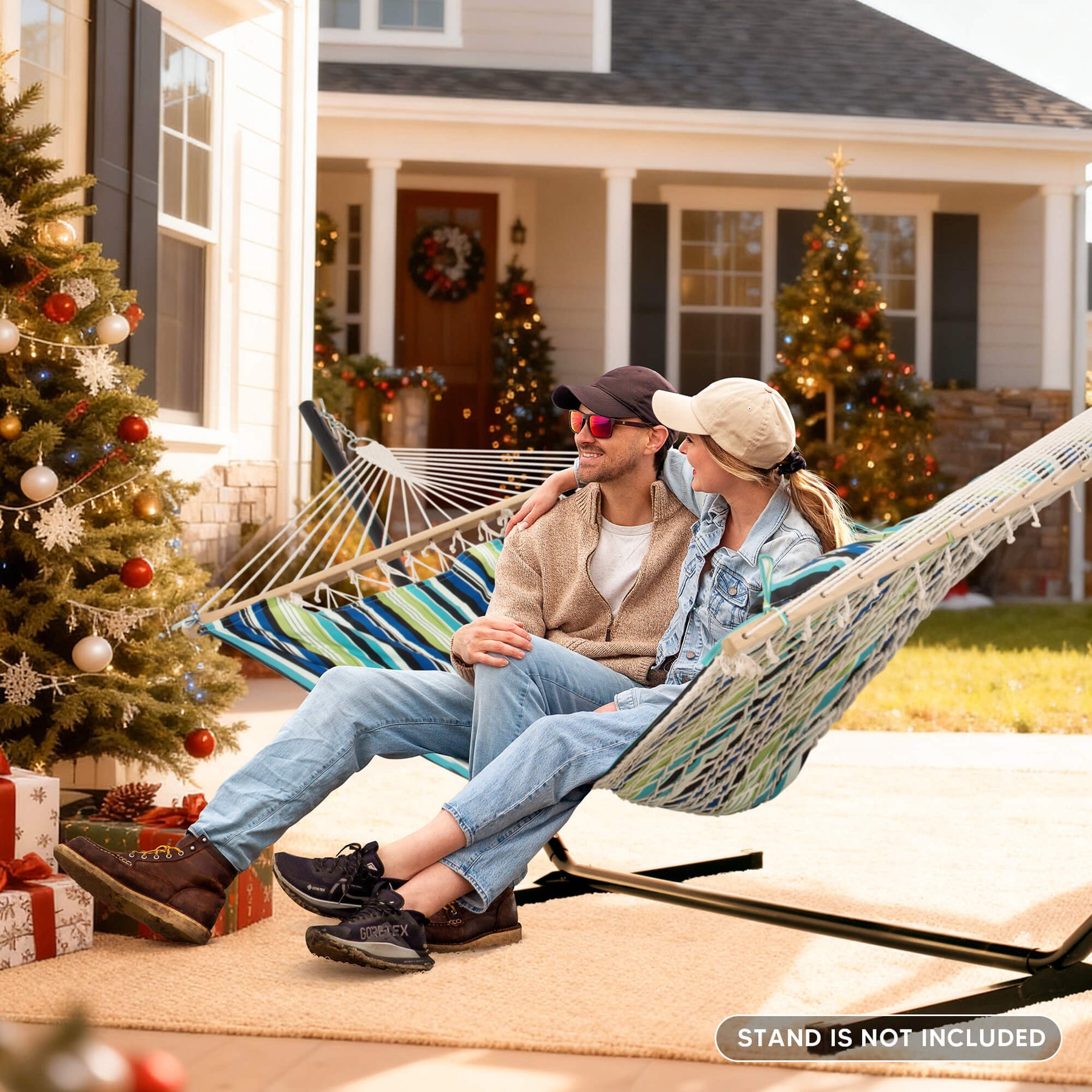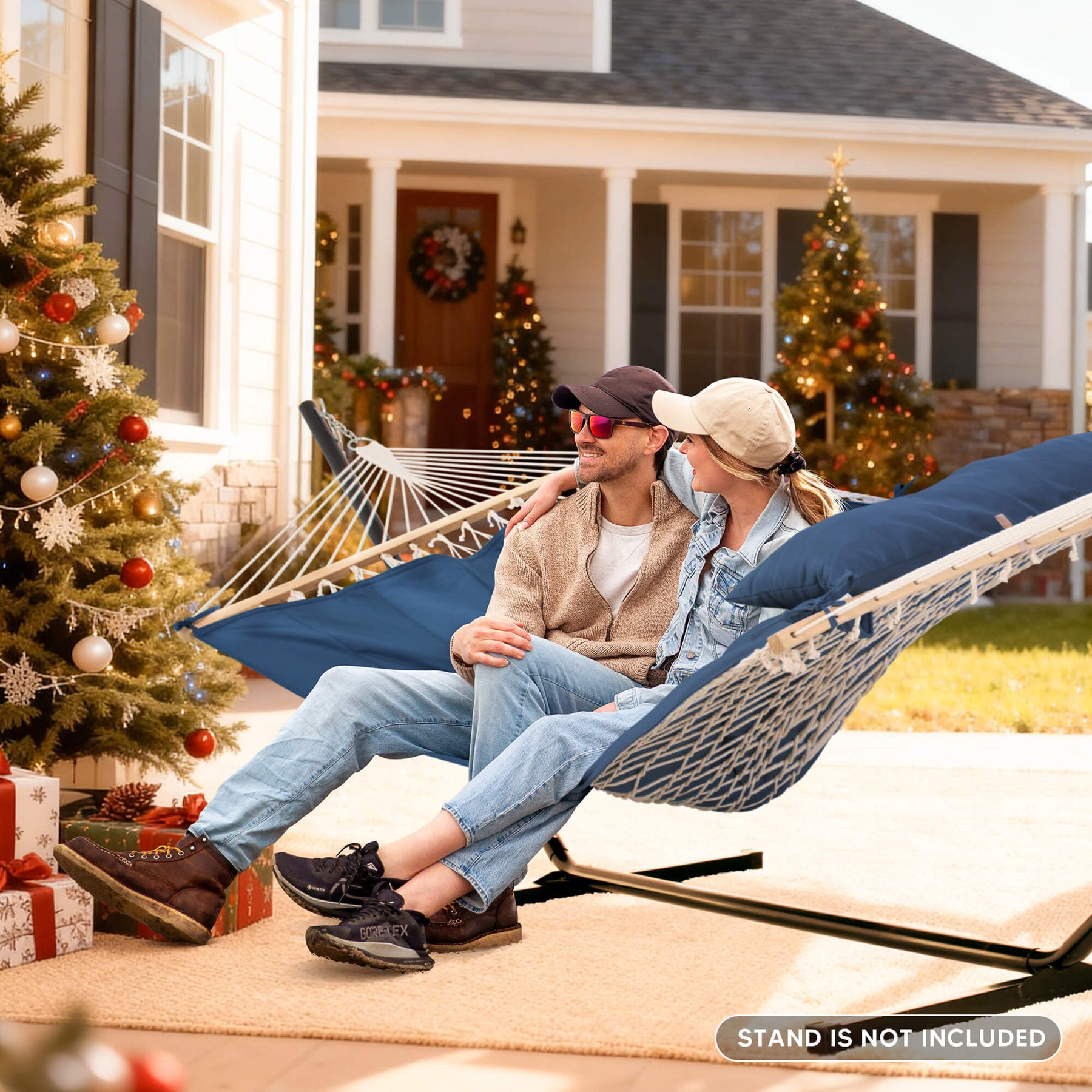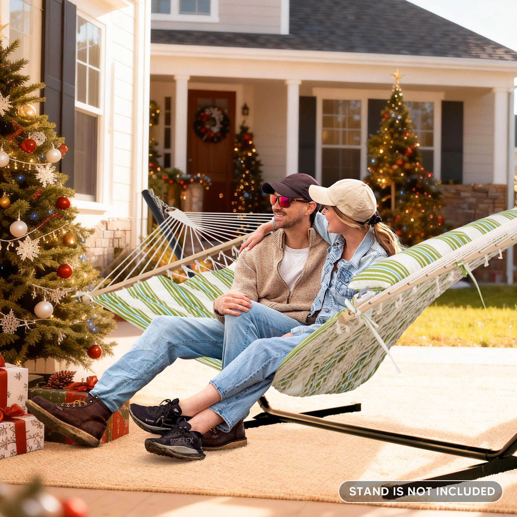 • Large 475-lb Capacity: 76"L × 52"W hammock bed (40"×8.5" pillow). Supports 475 lbs for shared relaxation.